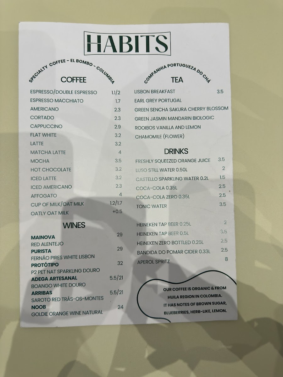 HABITS - BAKERY, FOOD & DRINKS Menu